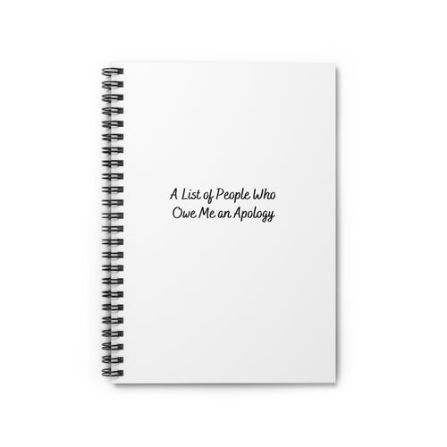 A List of People Who Owe Me an Apology Spiral Notebook | Funny Sarcastic Ruled Line Notebook